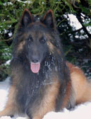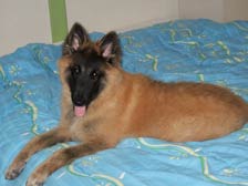 BIANCA DU SOUVENIR D'OTONNE, très jolie et très agréable lice de couleur fauve joliment charbonnée, Bianca dit Bibie pour les intimes a été confirmée 1er Choix et a eu d'excellents résultats en exposition beauté avec obtention de CACS et de Meilleur de Race. Elle a également passé avec succès son CANT et son SCAU .C'est aussi une grande "agilityste" en effet Bianca est vice championne régionale en 2ème degré d'agility, UN GRAND BRAVO à cette lice très douée pour cette discipline. Elle est issue du bel étalon Sujet Recommandé Toumaî des Mouises du Bel Air et de Scandale du Souvenir d'Otonne, regroupant tous les deux dans leurs ascendants d'excellents sujets tel que Xeros van de Hoge Laer, Pin Up du Crépuscule des Loups, Onyx des Terres du Courtil et Prudence du Périgord Vert. Pour les réservations : maud.le-du@orange.fr |