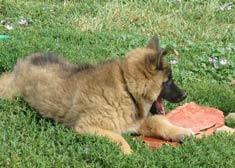 DAISY DE LA CROIX AUX CHEVAUX : très belle lice 1er choix de fourrure sable argenté, à la construction grande et bien carrée, et à la belle tête bien proportionnée, elle est dotée d'un caractère très agréable, et est issue du mariage de Ragtime de la Clairière aux Louves et d'Ulhane du Périgord Vert. Pour les réservations : croixauxchevaux@aol.com |