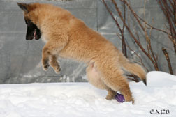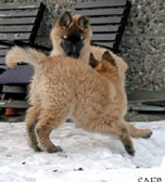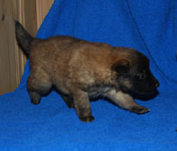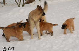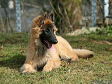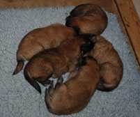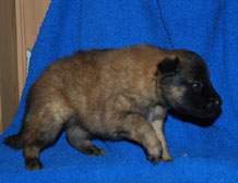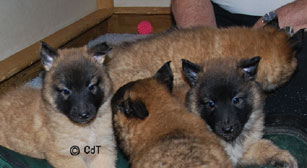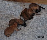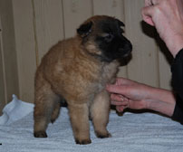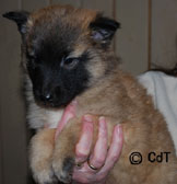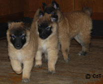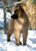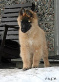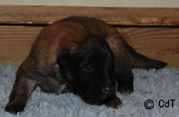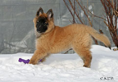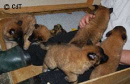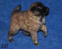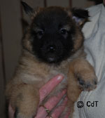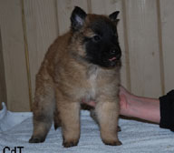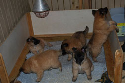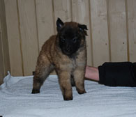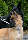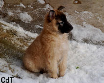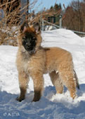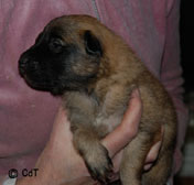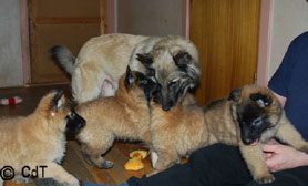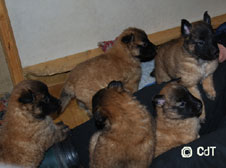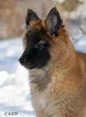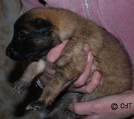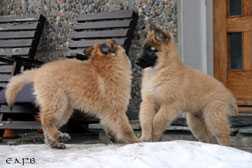 Cette union a donné 5 chiots, tous de couleur fauve chaud, la fourrure est très belle et dense, de beaux masques noirs, de petites oreilles portées hautes, les chiots sont de très bonne taille pour leur âge, les construcions sont assez courtes. beaucoup de ressemblance dans la portée. Le caractère est très agréable enjoué et convivial . Les Garçons : NIZOU, NENYAC, NOUGAT, NIMBUS et La Fille : NEMI |